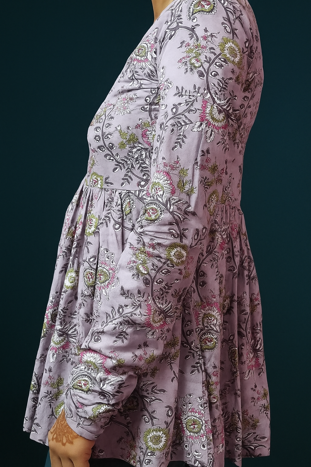Lavender Floral Hand-Block Printed Cotton Peplum Top